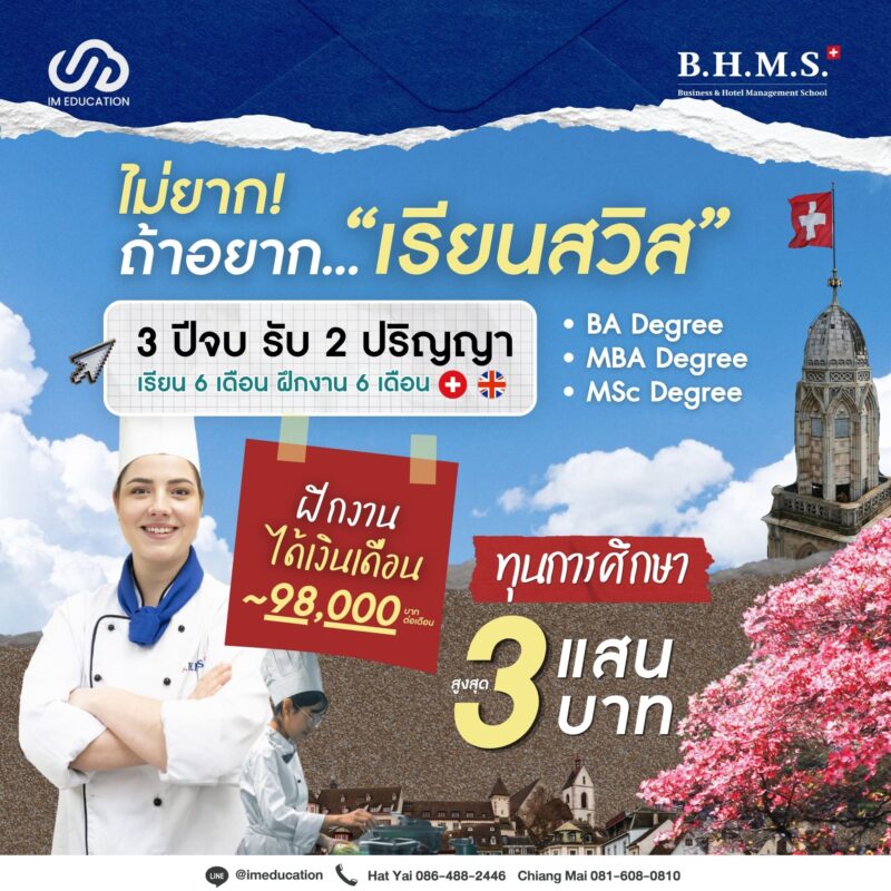 BHMS เป็นสถาบันชื่อดังที่ตั้งอยู่ในเมือง Lucerne และ Zurich ประเทศสวิตเซอร์แลนด์ เปิดสอนหลักสูตรหลากหลาย ตั้งแต่ปริญญาตรี ปริญญาโท MBA Diploma ไปจนถึงคอร์สระยะสั้น พร้อมจุดเด่นเรื่อง ฝึกงานมีรายได้จริงในสวิตเซอร์แลนด์ และโอกาสต่อยอดงานระดับนานาชาติ