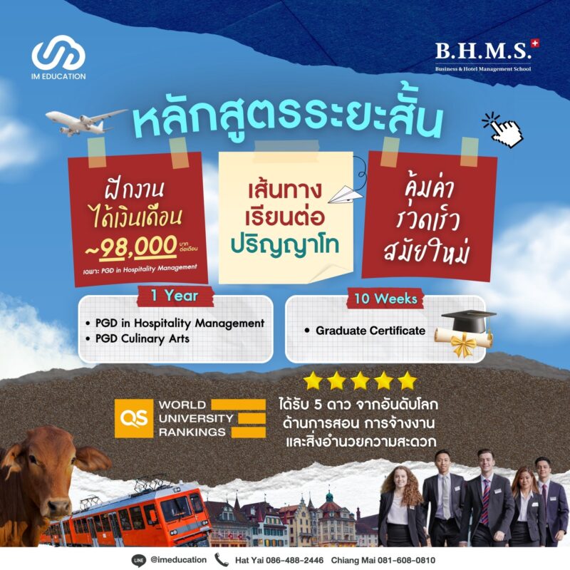 เรียนต่อสวิตเซอร์แลนด์ ในหลักสูตรระยะสั้นของ BHMS เหมาะกับคนที่อยากเปลี่ยนสายงาน หรือเพิ่มทักษะเพื่อเข้าสู่อุตสาหกรรมใหม่ เวลาเรียนกระชับ คุ้มค่า หลักสูตรทันสมัย