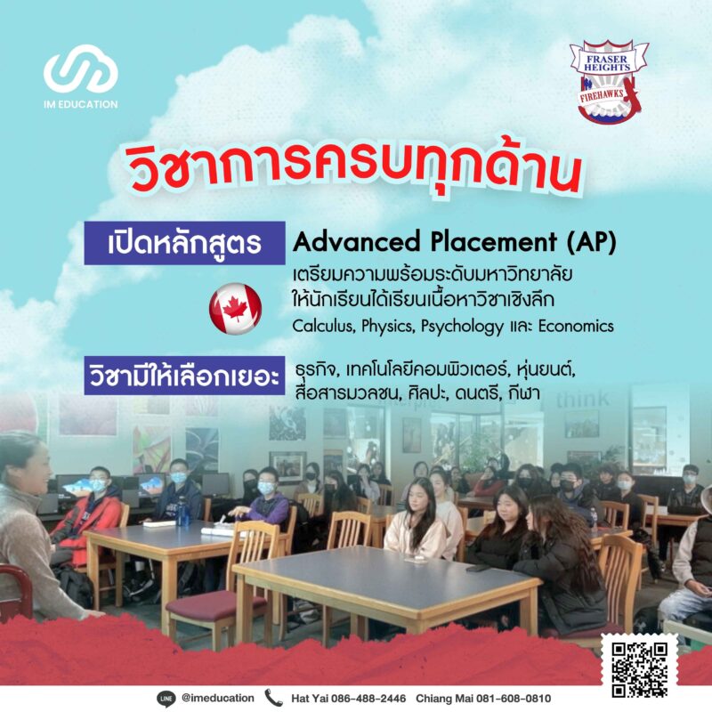 นอกจาก Science Academy แล้ว Fraser Heights ยังมี หลักสูตร AP (Advanced Placement) สำหรับนักเรียนที่ต้องการความท้าทายและเตรียมตัวสำหรับการเรียนต่อมหาวิทยาลัย วิชาที่เปิดสอน ได้แก่